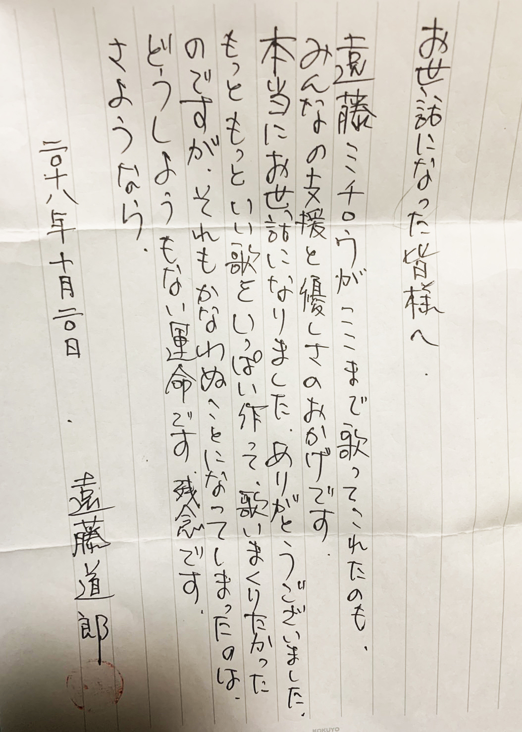 ミチロウさんの口惜しい思いの詰まった手書き遺言、
