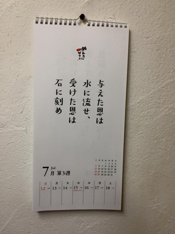 2015年7月12日 / 最終更新日時 : 2025年7月12日 hashimoto 映画 肝に命じます。 めんたいぴりりの週めくりカレンダーに、毎週、背筋伸ばされております。 今、気づいたんですが、ちょうど博多祇園山笠の時期の週なんですね。(20220712記) 8年前、週めくりカレンダーで読んだ言葉。受けた恩を石に刻むことは、まだちゃんとできてないかもしれんけど、この言葉は、心に刻んで、日々生きております。この週めくりカレンダー、毎年出して欲しいなあ。(20230712記) Follow me! @dodomeippatsu FacebookXBlueskyHatenaCopy コメントを残す コメントをキャンセルメールアドレスが公開されることはありません。 ※ が付いている欄は必須項目ですコメント ※ 名前 ※ メール ※ サイト 次回のコメントで使用するためブラウザーに自分の名前、メールアドレス、サイトを保存する。 上に表示された文字を入力してください。 Δ