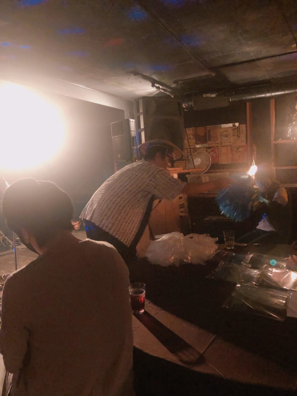 ワシの席、ステージに立つ人の真後ろに照明があったので、