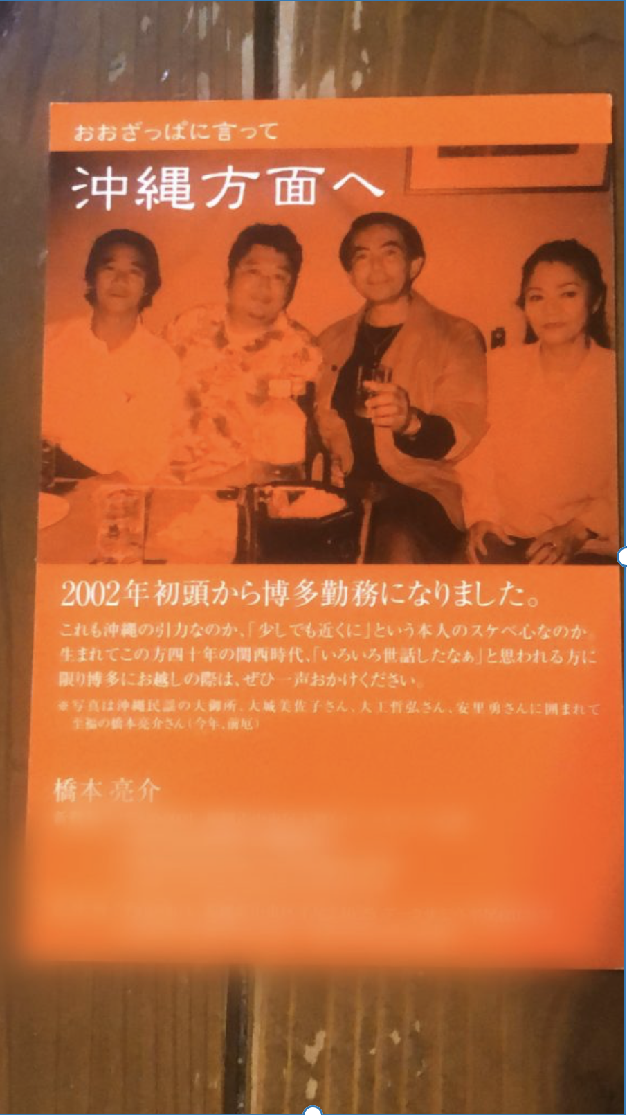 おかげで、ワシの転居先、沖縄やと思ってた人が何人かいたらしい。