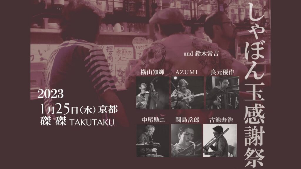 2022年9月20日 / 最終更新日時 : 2025年9月20日 hashimoto 音楽 欠かせない音楽。 ワシの人生には、鈴木常吉でなければならない夜があり、良元優作でなければならない夜もあり、AZUMIがどうしても必要な夜もあれば、カニコーセンが、なくては過ごせない夜もある。おんなじような朝や、昼も、もちろんある。 つまり […]